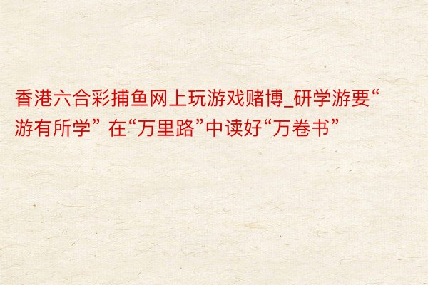 香港六合彩捕鱼网上玩游戏赌博_研学游要“游有所学” 在“万里路”中读好“万卷书”