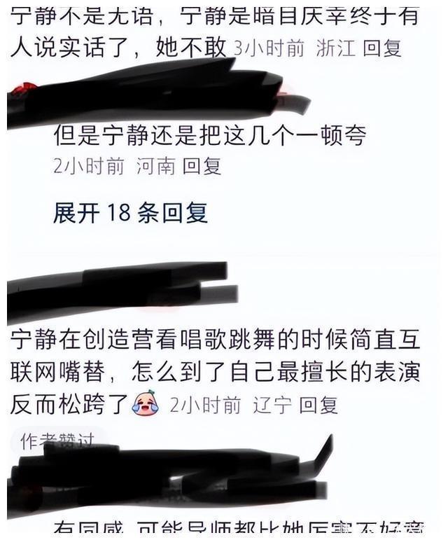 至于宁静,在这档节目上,更是重新到尾的混了。一运转齐认为她约略当个敏感导师大杀四方,实质上她重新到尾齐保抓着夸赞的姿态。